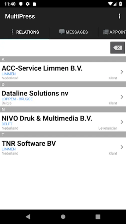 With this application can look up with relationships. The following data are available from these relations: General data, contacts, calculations, orders and products.
