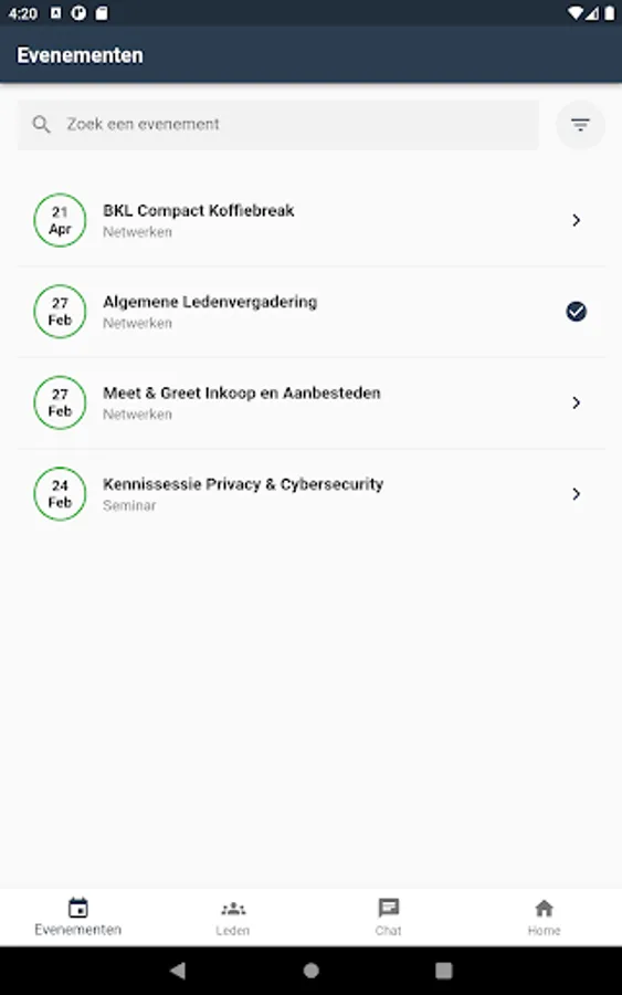Sign up for events, immediately see who else is coming, easily start the conversation or search for members in the membership book. This and more within the exclusive members app of Bedrijfskring Lelystad.
