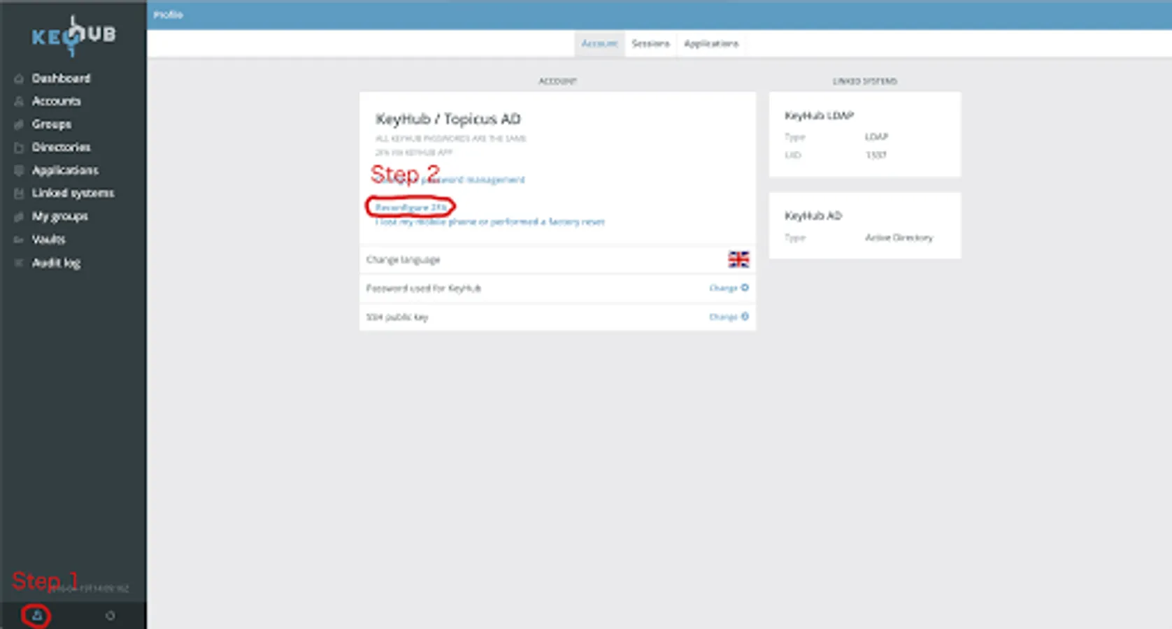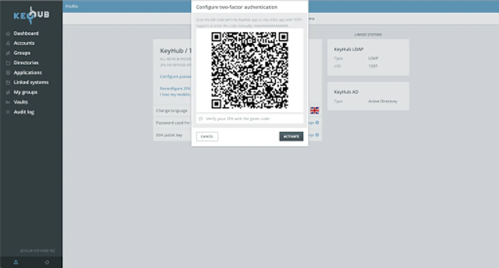 Login to KeyHub, goto your profile and click on (re)configure 2FA. Scan the QR code, don't forget to click on Activate and you are all set!