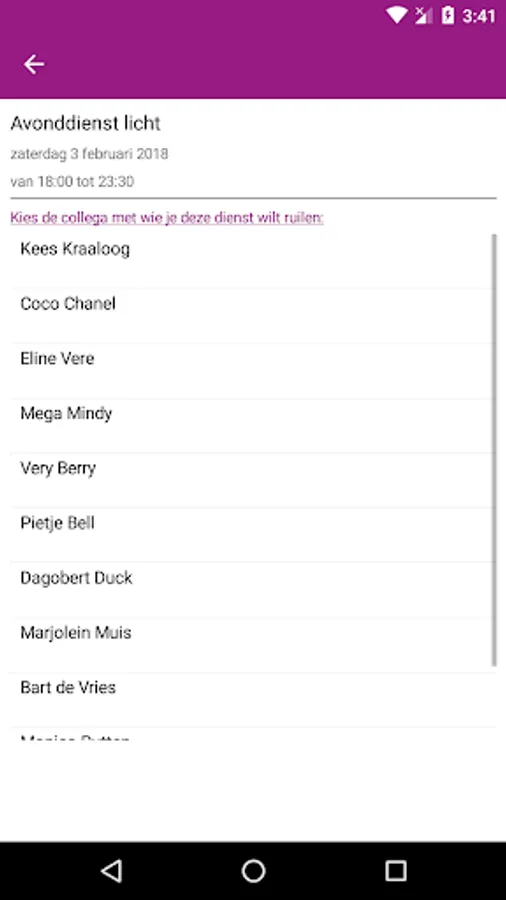 With the app you can view your own schedule, see which colleagues you work with, enter your hours worked, specify availability and exchange shifts.