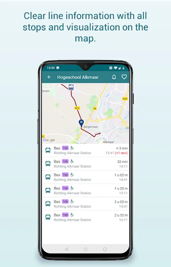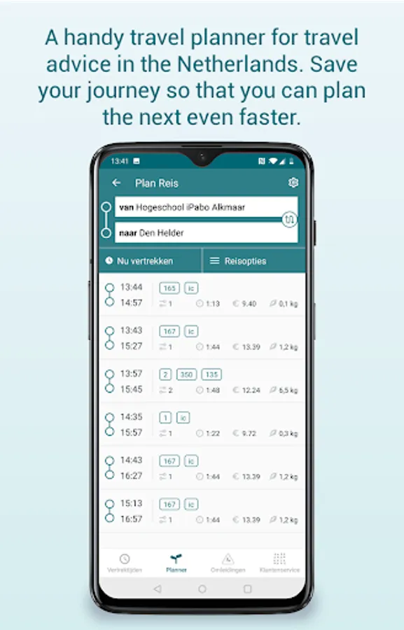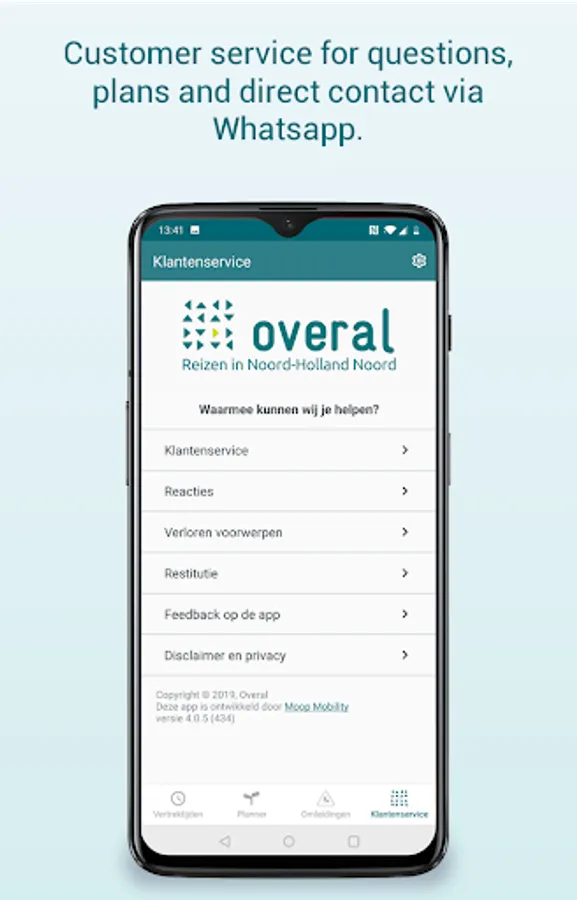 In this app, you can plan your journey from A to B, reserve a ride with Overal-flex if available, see current travel information and possible diversions, and contact Customer Service.