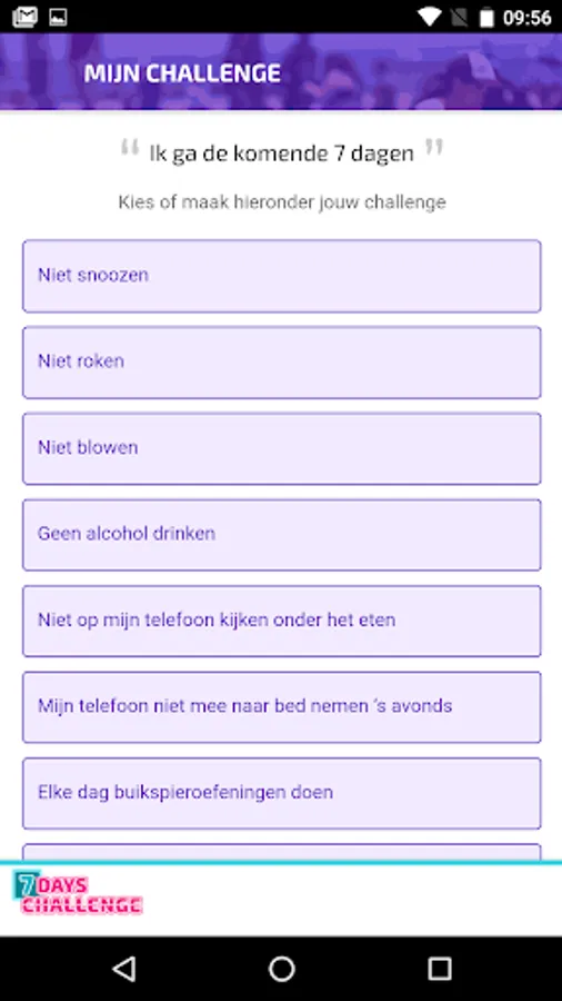 7 days challenge app helps you to train your willpower and so to get rid of your bad habits or even to develop new habits.