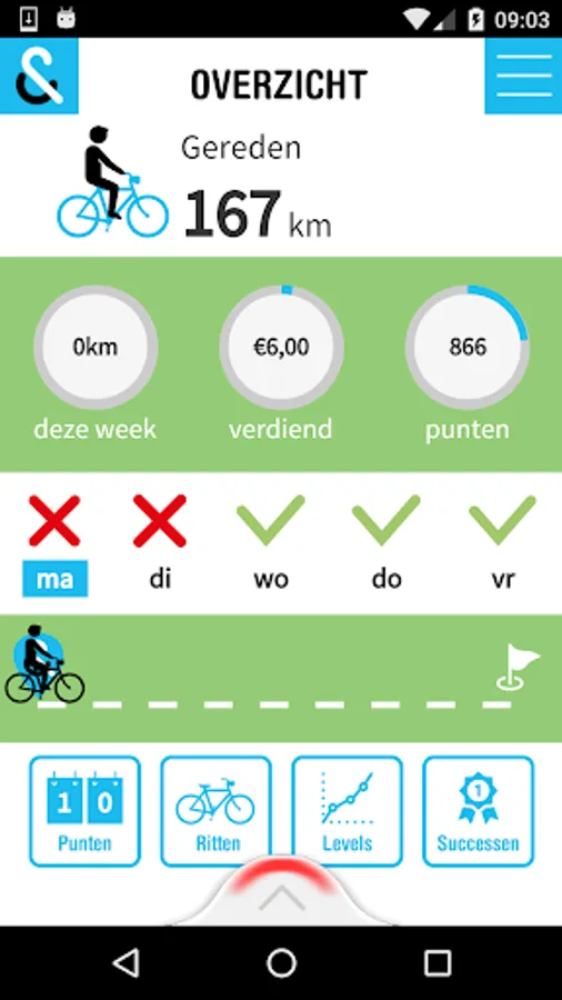 Cycling to work with the Slim & Fast app is fun. The app records all your rides, minutes and kilometers. And encourages you to continue.