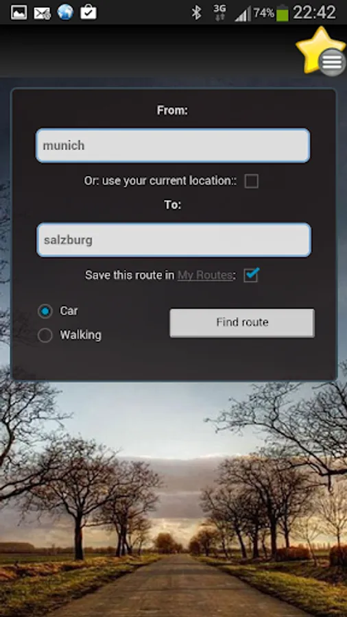 Find the easiest and fastest travel route to your destination. Insert your starting point and your destination - and get custom road map directly - on a may or as driving directions.