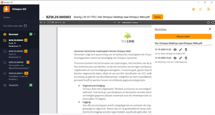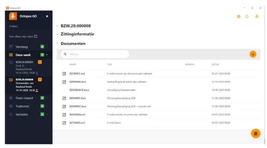1. When Octopus Go is used for “hearings”, Octopus knows who is present at which hearing, or who plays a role in the case in question. The correct cases (files) are then automatically placed on the app of the correct person.