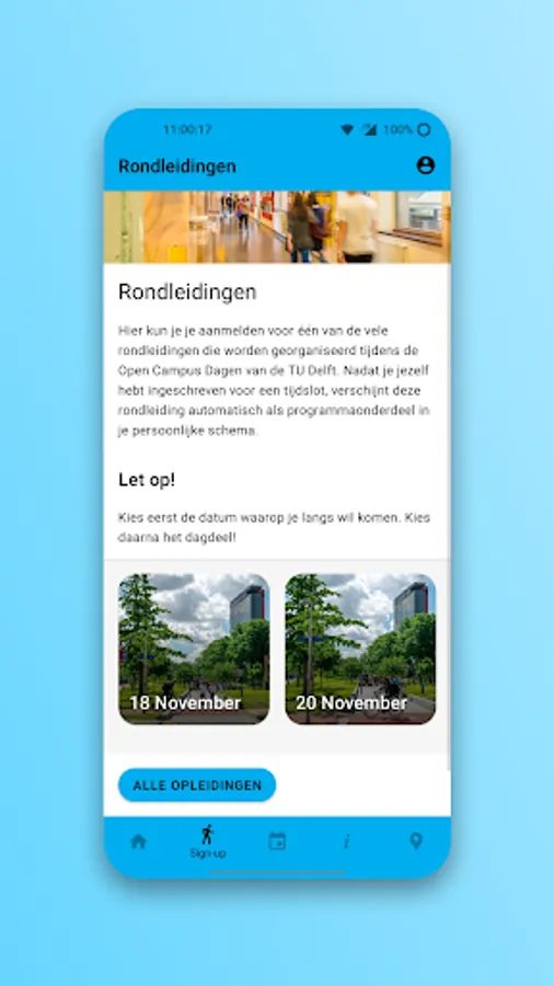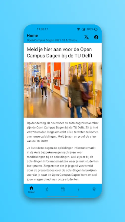 Come to the Open Campus Days to find out everything about the bachelor's programs at TU Delft. And of course to taste the atmosphere of the TU Delft. On these days you can visit the information market in the Aula, take a tour of the faculties and there are training presentations. You can also ask all your questions to students who are present at the various information markets.