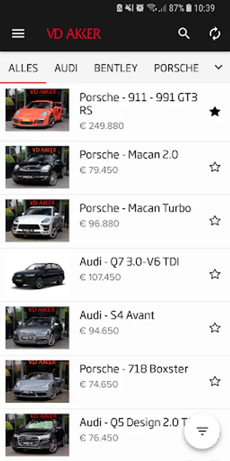Search our exclusive car occasions that we are proud of with the most relevant search filters! Set favorites, share the most beautiful occasions, contact us directly or start your route planner directly for a visit to VD AKKER.