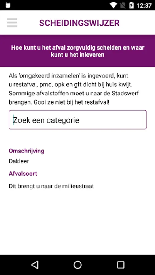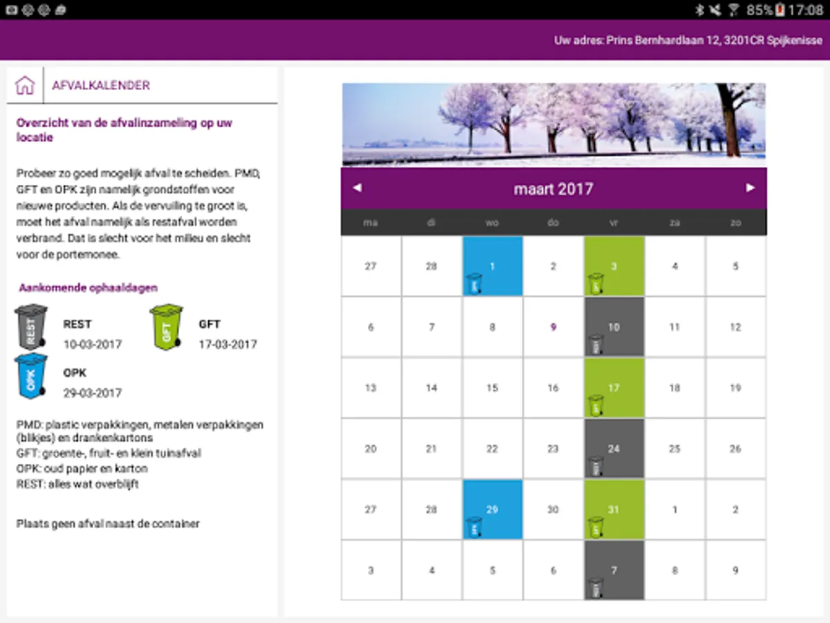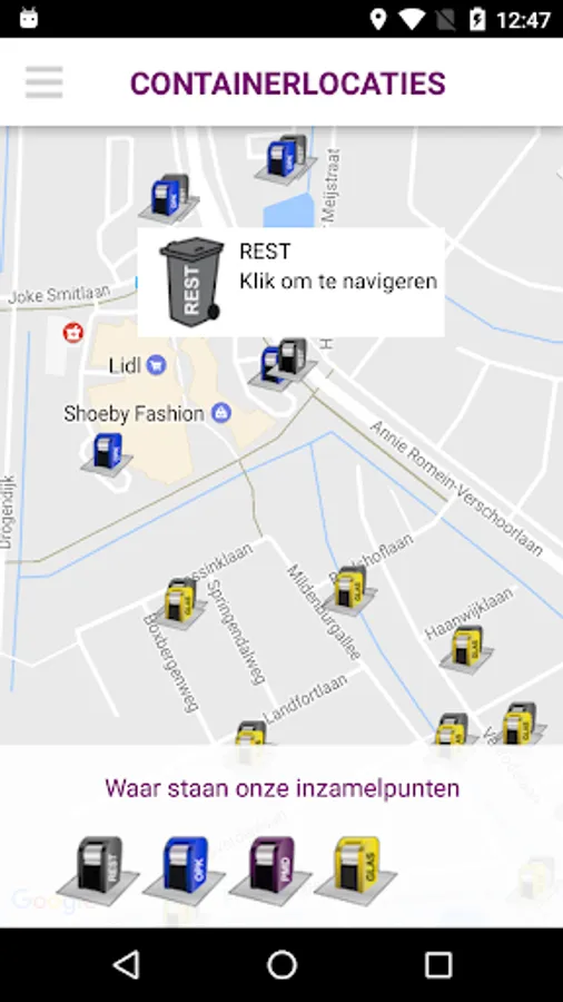 In the app you will waste calendar and separation pointer. You can make an appointment to pick up textiles or bulky and receive messages about the services at your location. It is even possible to get a reminder that you have to offer the container. Also easily the locations of underground containers for general use (not for business) in your area.