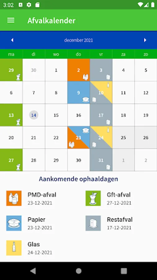 Enter your zip code and house number once and you can immediately see when which container will be collected from you.