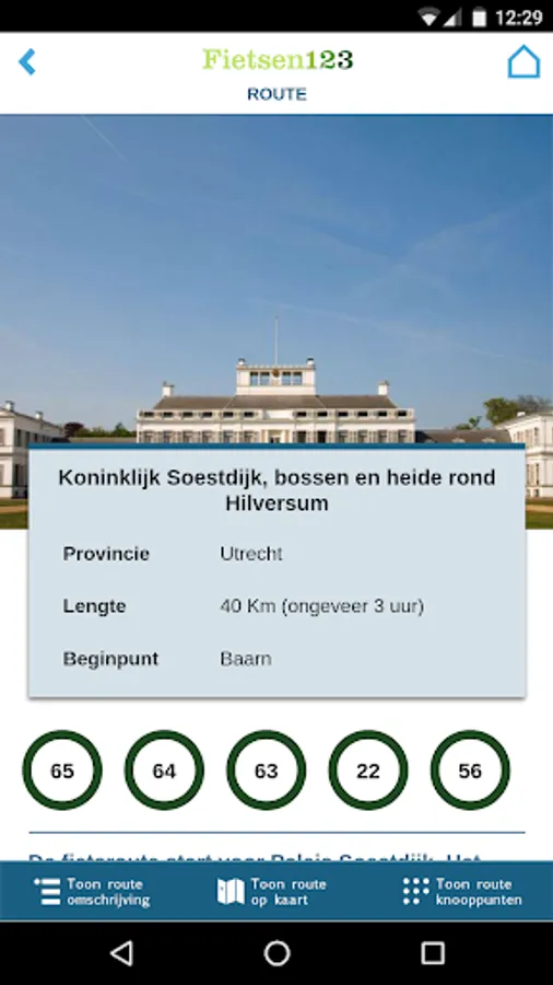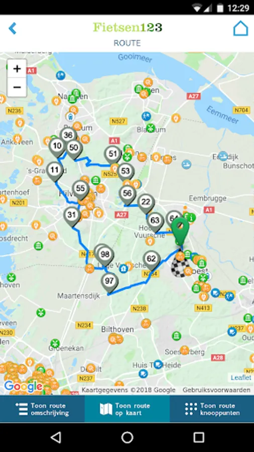 You can find the app now hundreds of routes throughout the Netherlands on the basis of the famous cycling network. Select a route into the app and you can start immediately. You can follow the route from your phone through an easy to follow junction view.