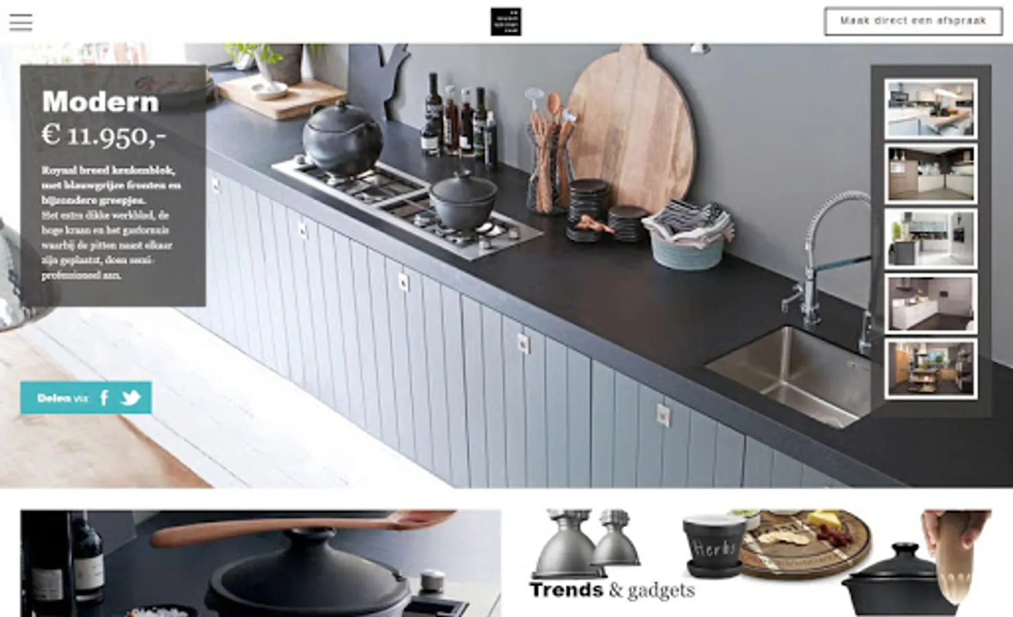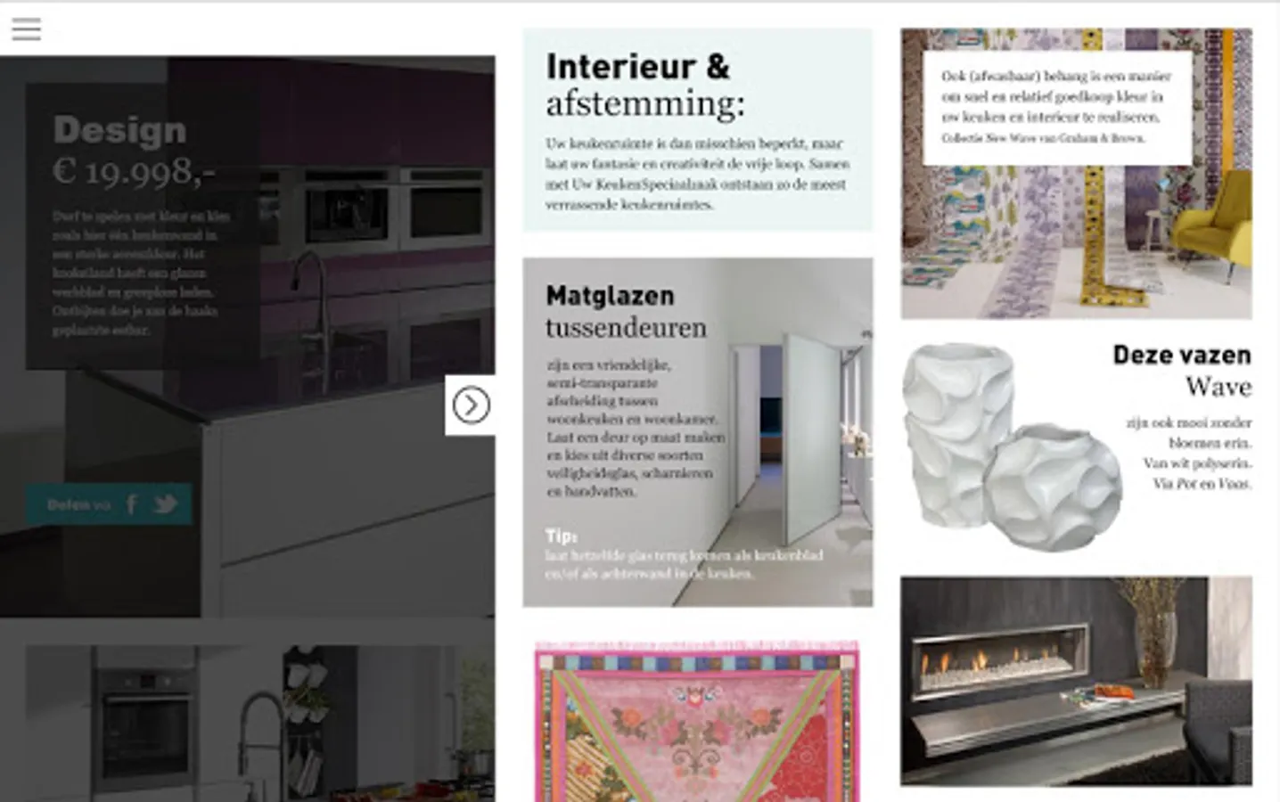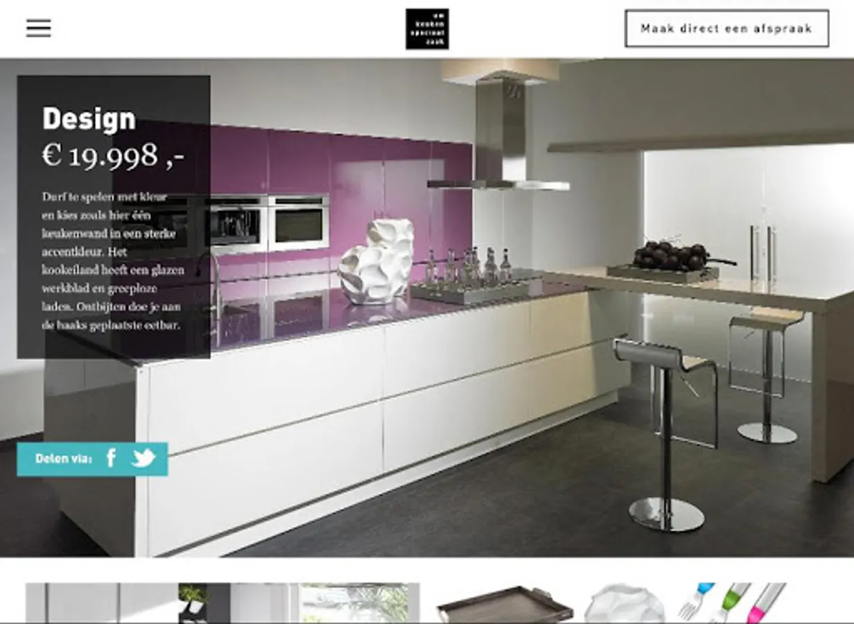 You will find inspiration and ideas for your own dream kitchen at all kitchens in Smaakmakers. Each of the kitchens contains a number of clickable elements in which we delve deeper into the applied colors and materials, the alignment with the interior, processed trends and gadgets and the equipment in the kitchen. So download the free Appetizers app, taste the atmosphere and get inspired.