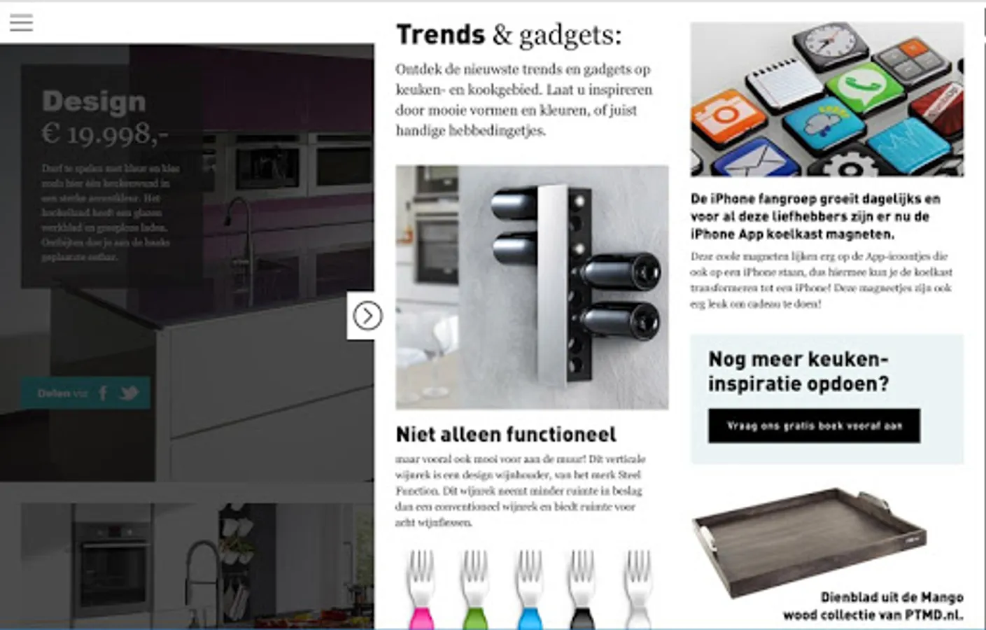 If you like to cook extensively and stand in the kitchen, you naturally want to know what the latest trends are and what is for sale. With the free "TASTEMAKERS" app from Your Kitchen Specialist, a kitchen world opens up to you. In our app you will find plenty of ideas, trends, gadgets and useful information about colors, materials and equipment for your kitchen.