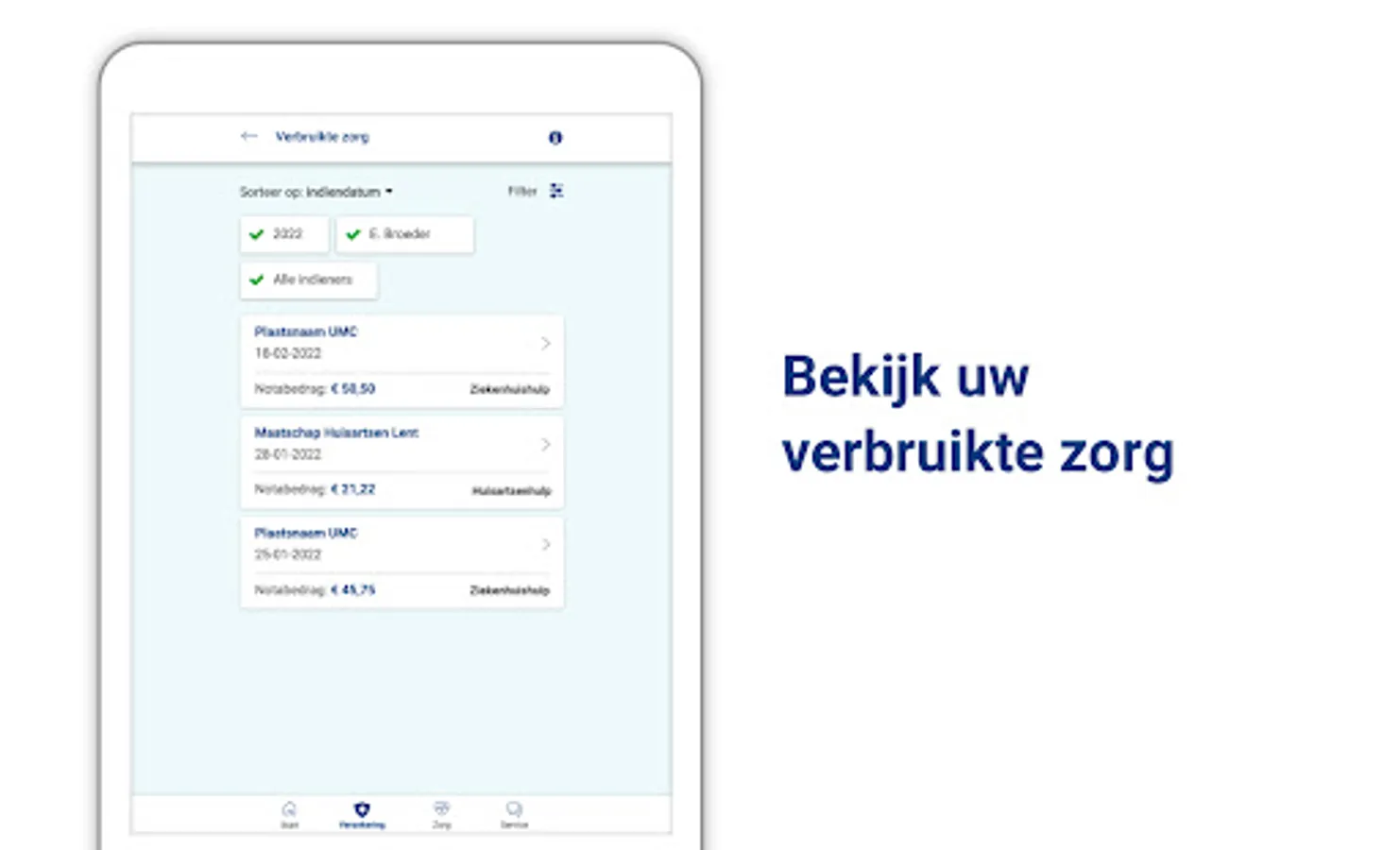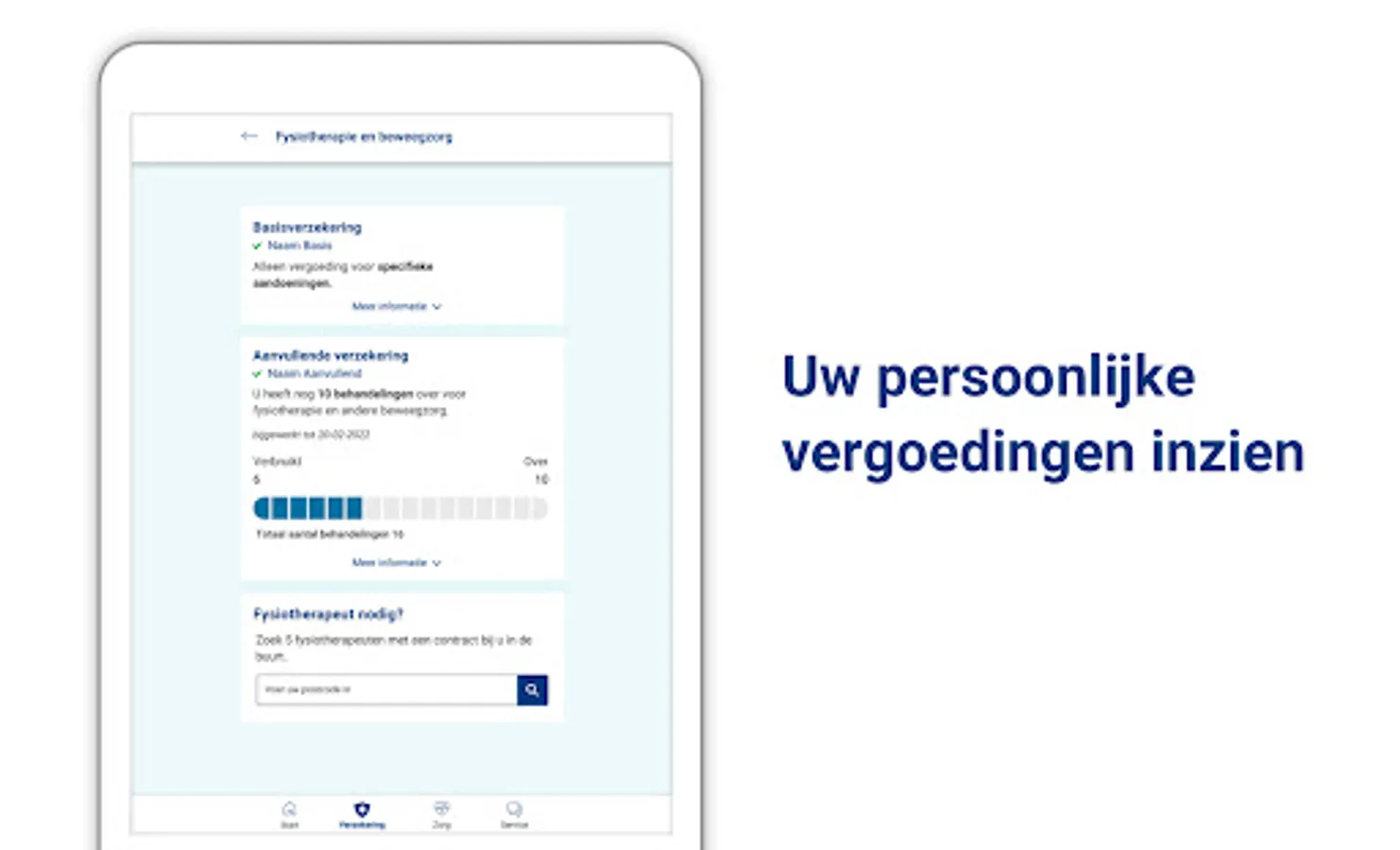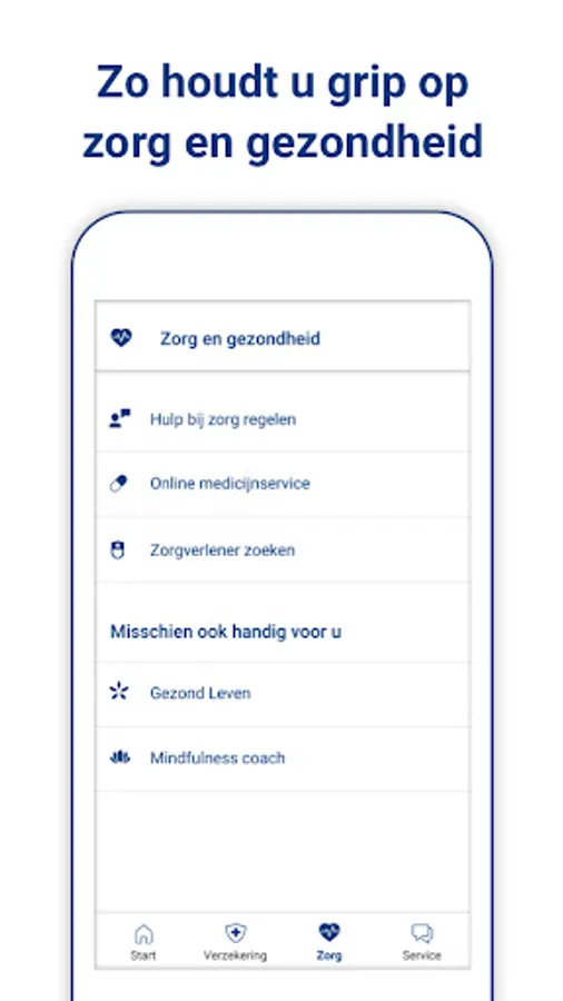 Healthy living is not always easy. That is why we are happy to help you with useful services related to health. And do you still need care? Then you can quickly and easily arrange your healthcare matters via our app. For yourself or for others on your policy.