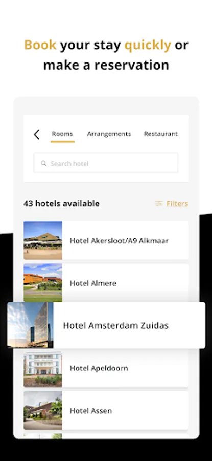 Each hotel is extensively highlighted. You will immediately see the address and contact details, what the facilities are, what the rooms look like and what is on the menu. This way you always sleep in the room that suits you with all the facilities you want and you always eat what you like. Are you looking for inspiration for your stay? After booking you have the opportunity to explore the area via the app. In addition, you will receive a free drink upon arrival if you book via the app. Is that a nice start to your mini vacation!