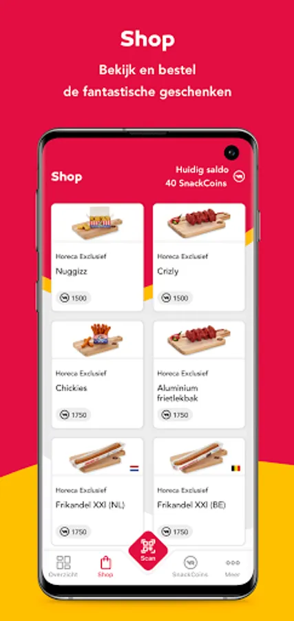 If you have saved enough SnackCoins, you can exchange them for fantastic gifts that are catering-exclusive, family or 100% Belgian. You can choose from free snacks, handy tools for the chip shop or fun products for yourself or your family.