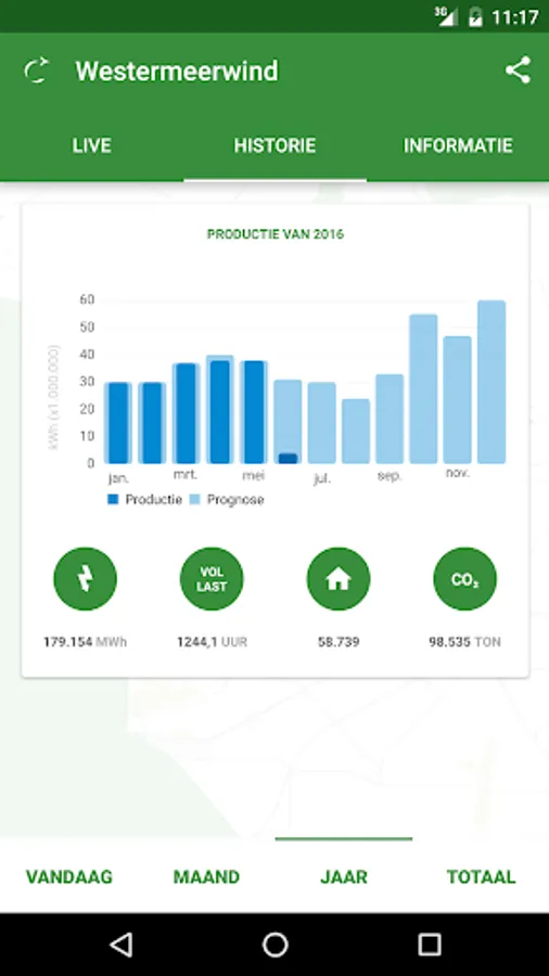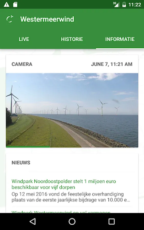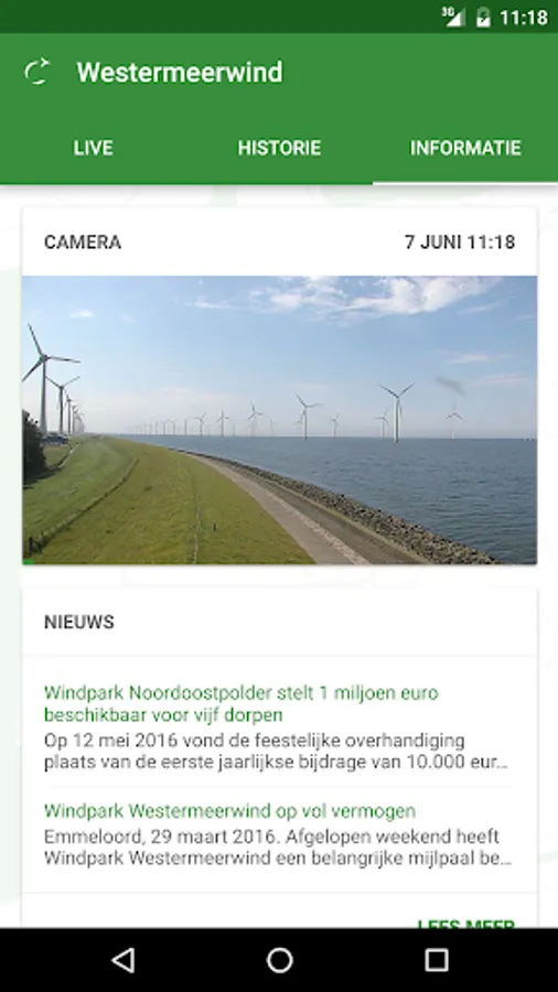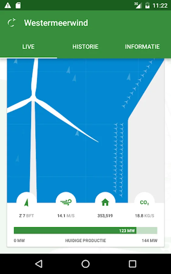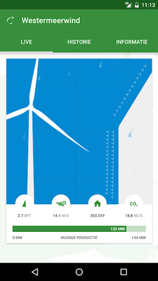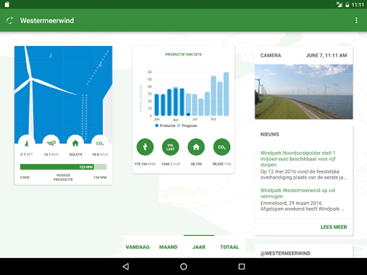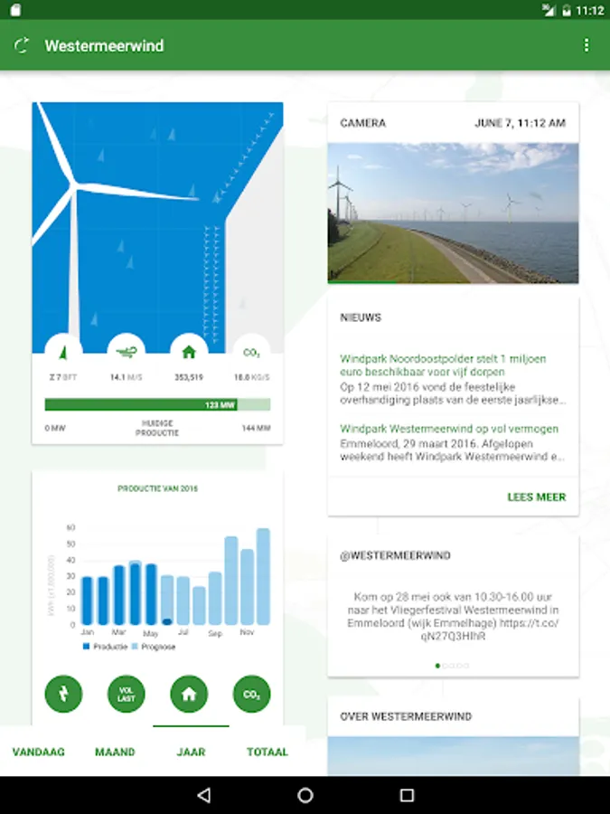 The Westermeer Wind App shows you appealing way how much power Windpark Westermeer Wind generates, how hard the wind blows and how much electricity has been produced recently. In addition, the app includes the latest news and answers to frequently asked questions.