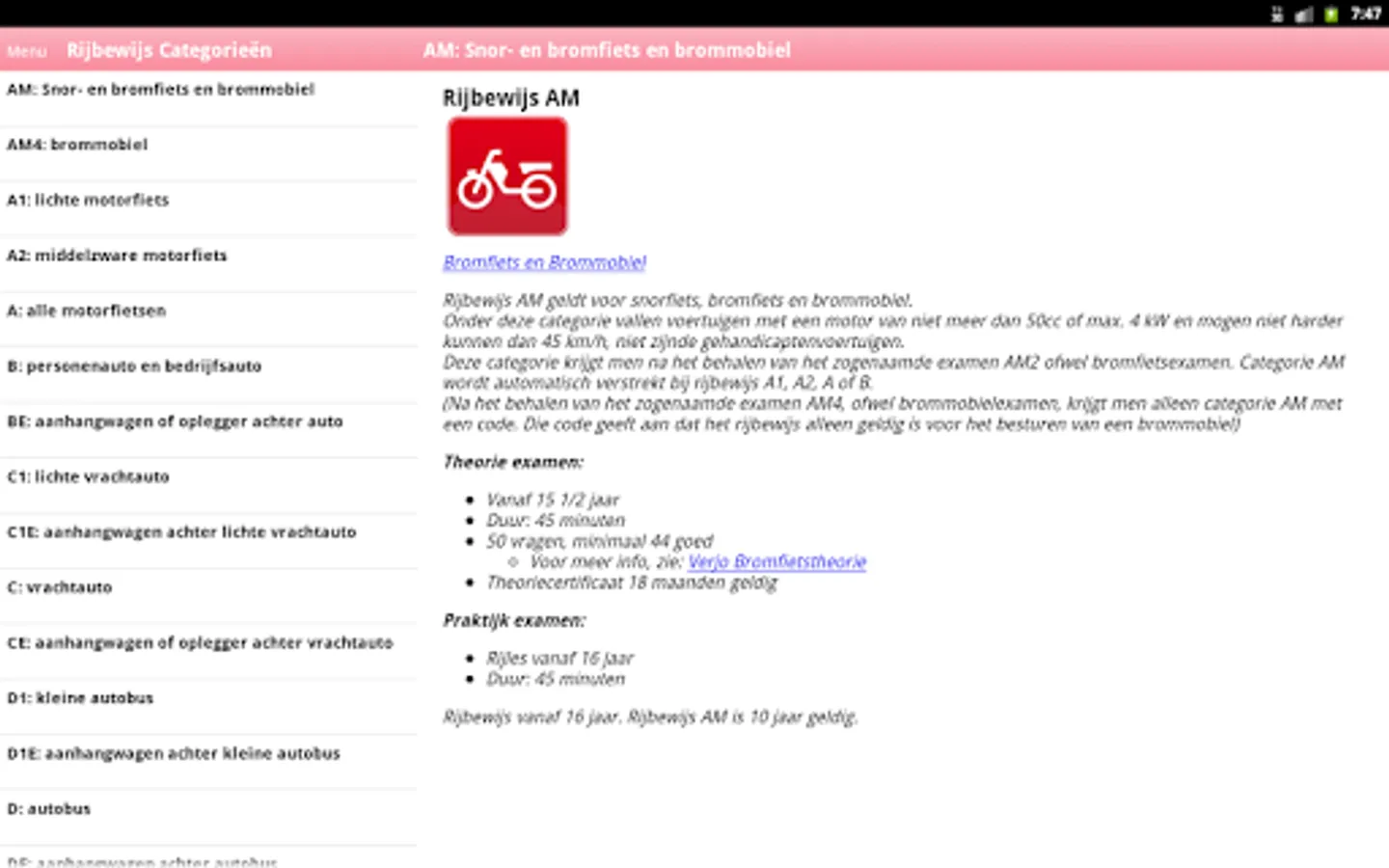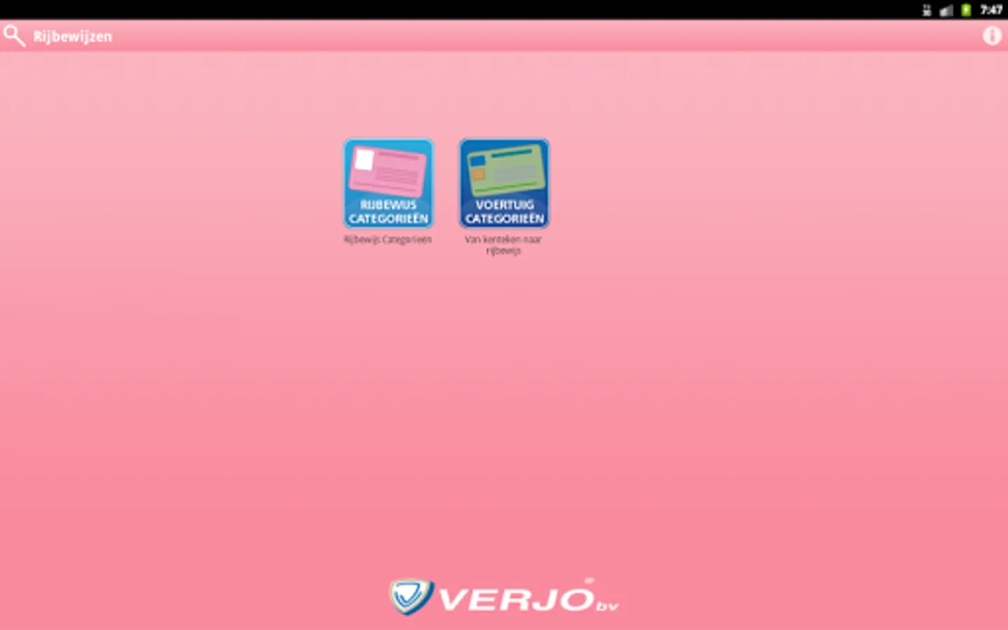 In a simple and effective way to get information about the different license categories Verjo has developed this app. A useful app in the ever-growing forest of Dutch licenses. Finally unraveled the more than 16 types of Dutch licenses.
