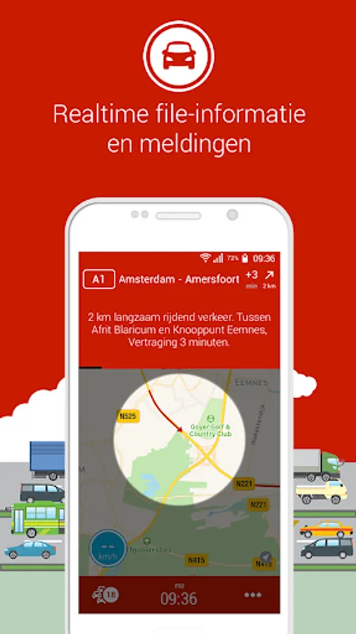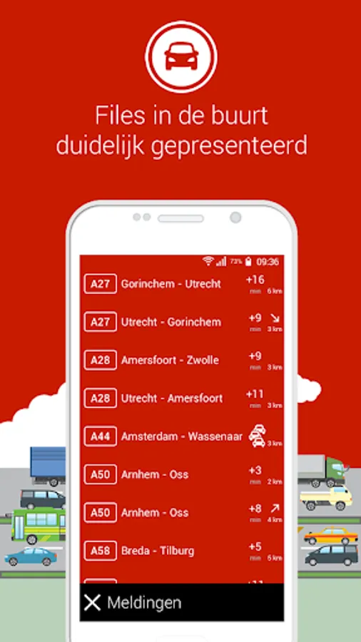 Verkeerplaza shows the current Traffic information of the Netherlands. Real-time file information clearly and simply presented.