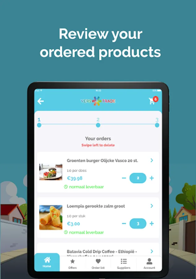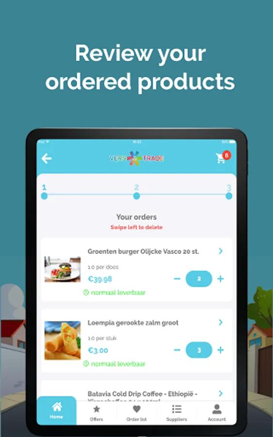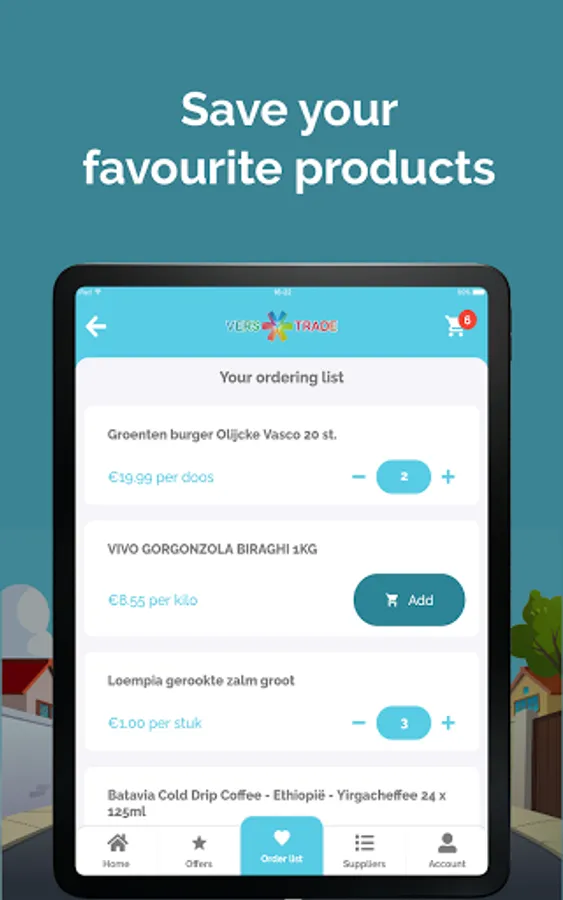 VersTrade offers a platform where you can order quickly and easily, where you have full control over your inventory and therefore your waste management. And you contribute to a better world by becoming part of a sustainable logistics chain. VersTrade collects your order from different suppliers and ensures one delivery in which we bundle all your products.