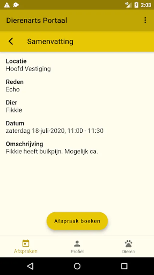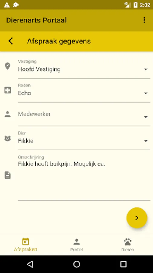 With this app you can view and book appointments with your vet if he uses VetsWare.
