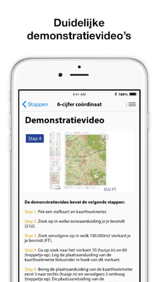 Need support while reading a map and / or working with a compass? This performance support application gives you information about six actions. These are: