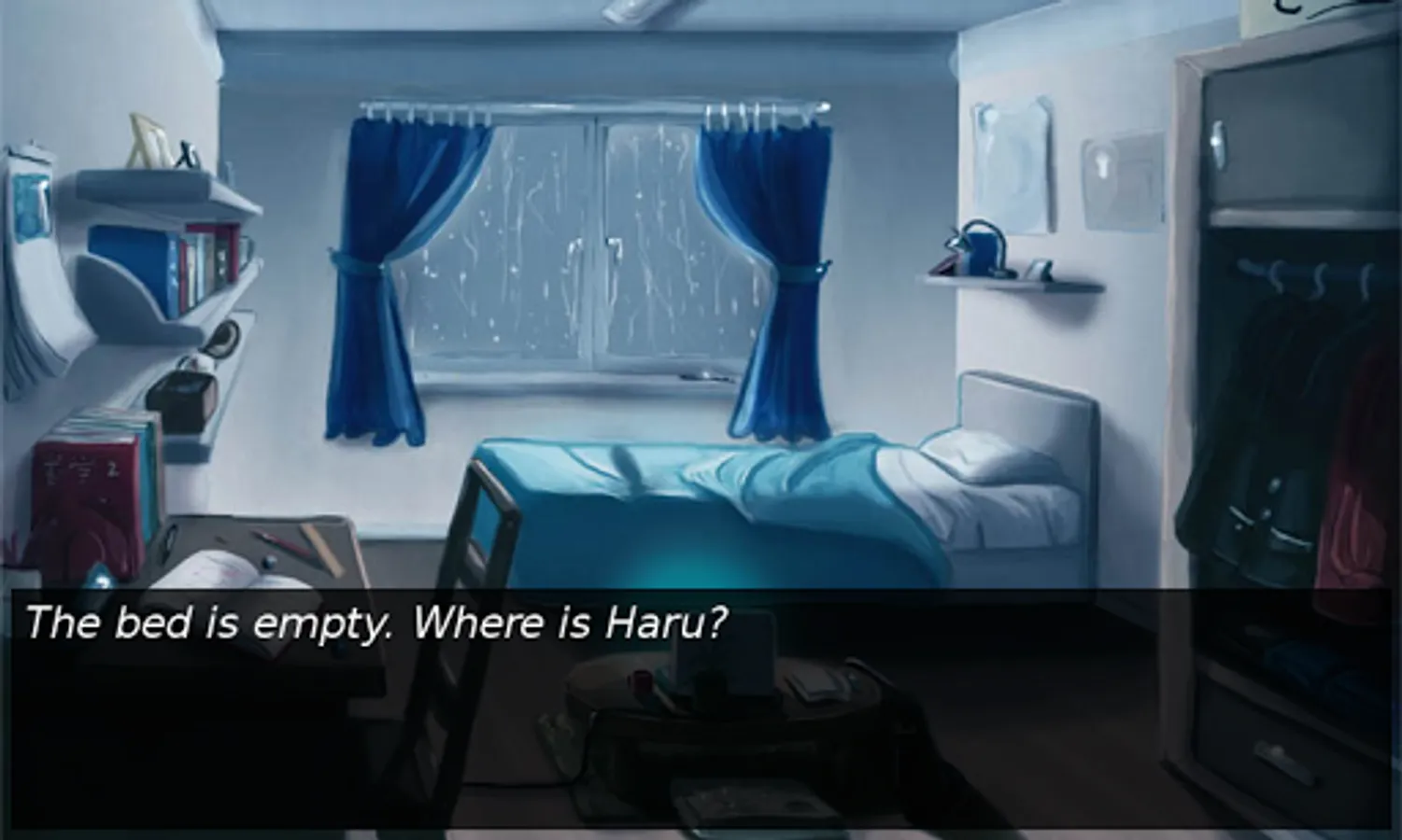 A short visual novel about Haru, the main character from the "Shadow Trilogy". This time you team up with him to work on a school project. However, in this night something strange happens. Suddenly you’re locked inside your own room and a dark power menaces your life! Can you find a way out of your room? Can you even survive this night? Pay attention to your environment and you might have a chance to escape.