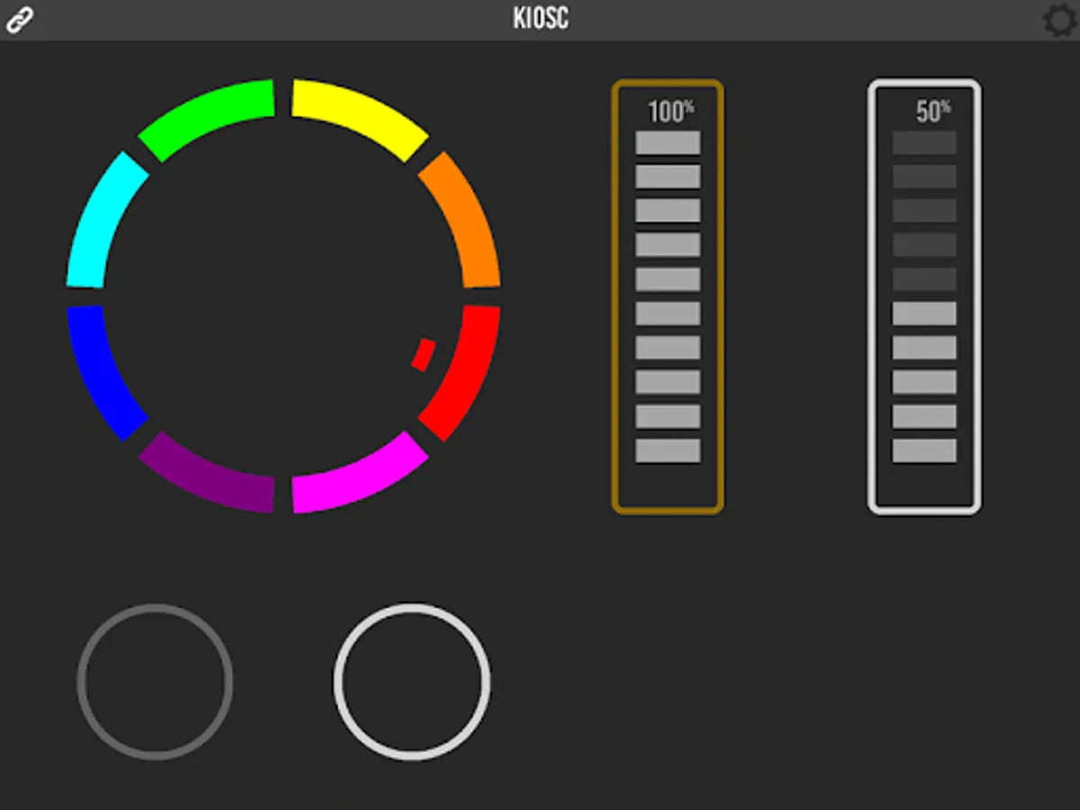 There is a lot of cool equipment available that can be controlled via UDP or OSC messages. You can choose Kiosc to be the stylish front-end for triggering all these video, audio and lighting devices. When designing the layout of your dashboard you can combine buttons, sliders, encoders, check-boxes and colour-pickers. You can drop in your logo or any other graphic.