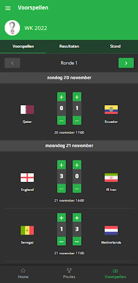 Compete against your friends, colleagues or teammates and beat them with your football knowledge. Create groups and earn points by correctly predicting as many matches as possible.