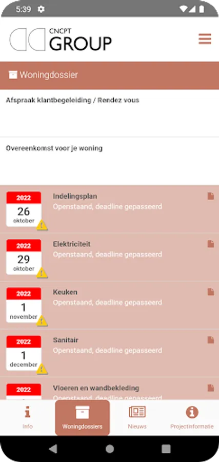 With this app we offer our customers a digital and interactive housing file, where all information regarding their project can always be found. Thanks to this professional approach, we provide faster interaction, clear deadlines and a clear overview of the state of affairs.