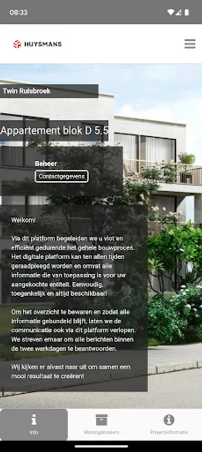 Bouwwerken Huysmans offers a digital platform where all information regarding the purchased entity in the construction project is bundled and can be consulted at all times. Simple, accessible and always available!