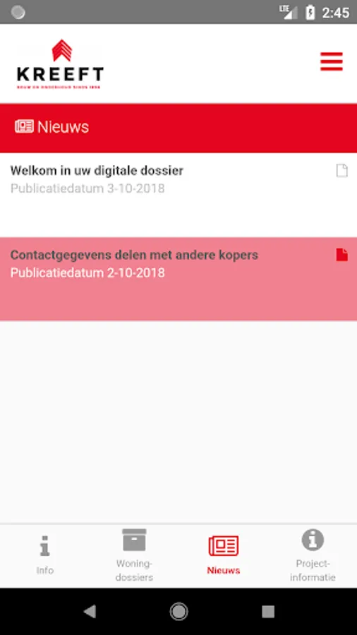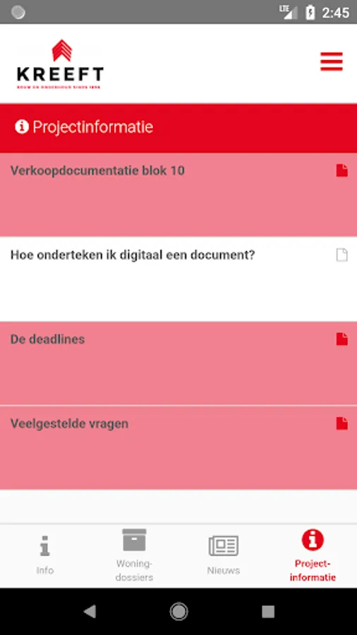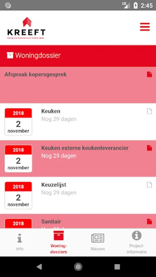 With the digital and interactive housing file of Bouwbedrijf Kreeft, you will be professionally unburdened and optimally informed about all matters concerning your home. Your personal home file will contain all your important matters such as offers, order confirmations and the like. Your buyer supervisor is also active on this digital platform so that all information is optimally aligned.