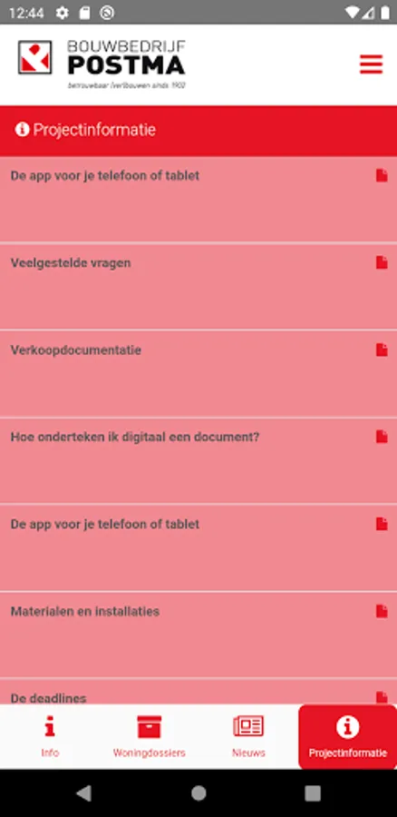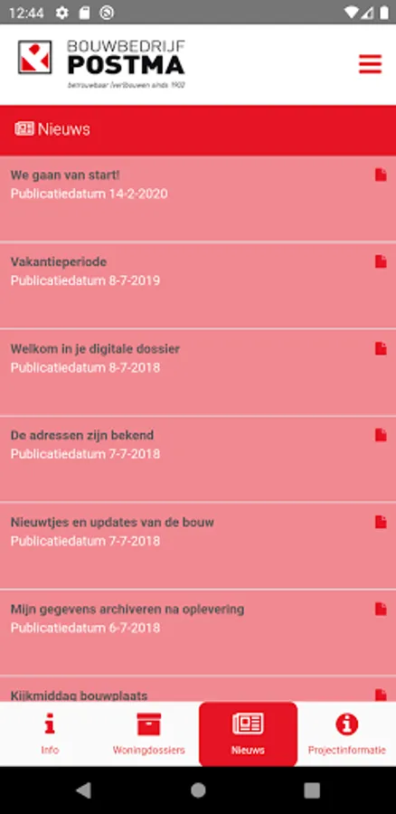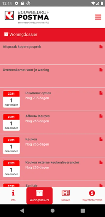 Met het digitale en interactieve woningdossier van Bouwbedrijf Postma word je op professionele manier ontzorgd en optimaal geïnformeerd over alle zaken rondom je woning. In je persoonlijke woningdossier vind je alle belangrijke zaken zoals offertes, opdrachtbevestigingen en dergelijke. Jouw kopersbegeleider is ook actief op dit digitale platform waardoor alle informatie optimaal is afgestemd.