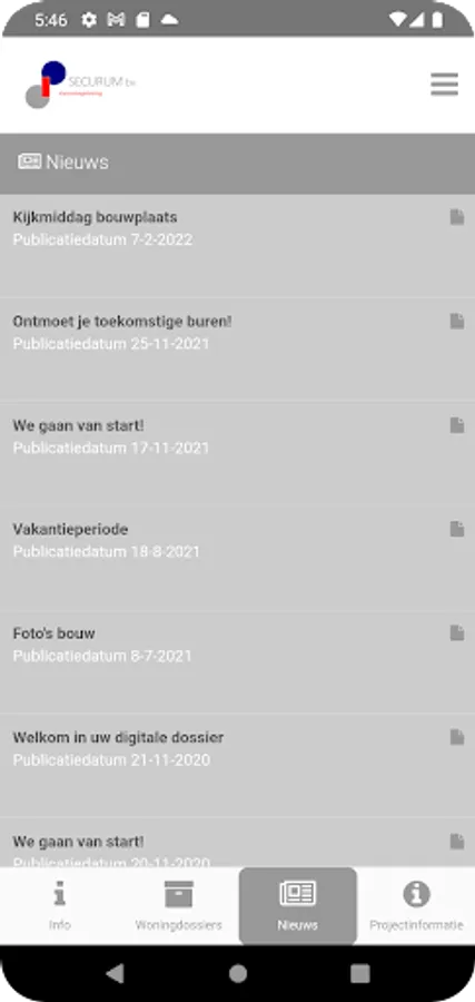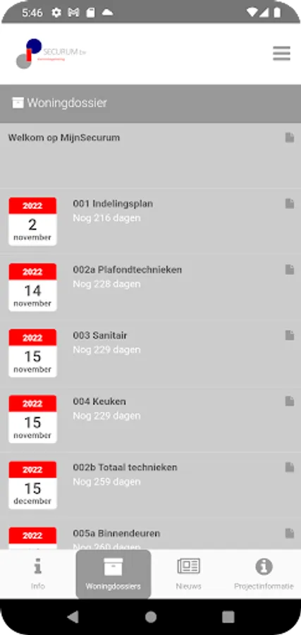 Met het digitale en interactieve woningdossier MijnSecurum heeft u steeds alle informatie betreffende uw woning en het project op zak. Alle documenten, plannen, offertes enz. voor u online verzameld. Een duidelijk overzicht van de mijlpalen met de nodige reminders en updates over de stand van zaken.