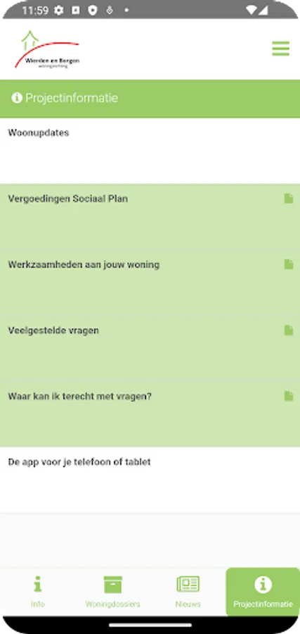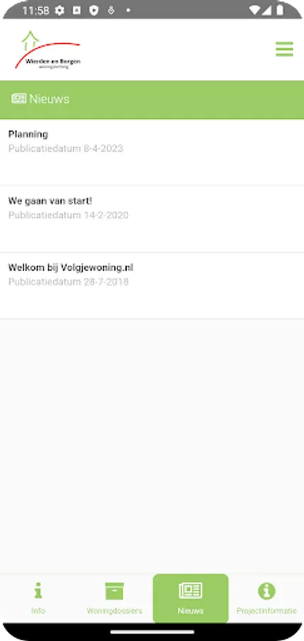 In the app 'Volgjewoning' you will find all information about the activities of your home.