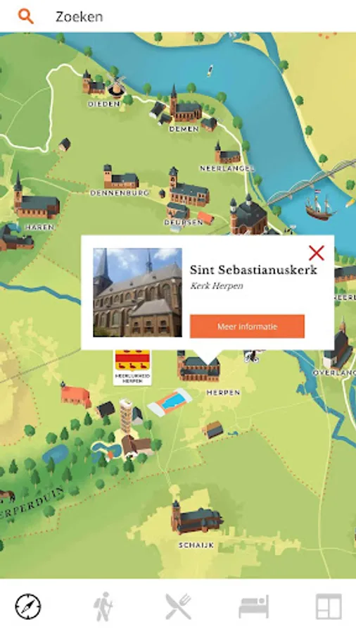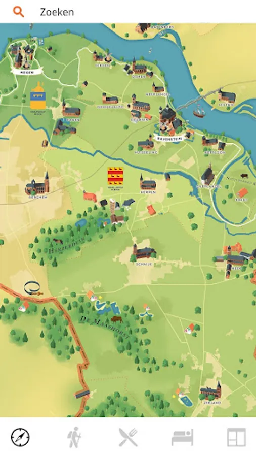 Because the Land of Ravenstein is not just a mecca for culture lovers. Nature lovers are also amazed. Nowhere else in Europe can you find such a variety of nature reserves so close together. The app contains tours through wide heathland with forests bordered in the Maashorst where the mighty Wisent has returned; through desert-like areas in Bedaf and Herperduin and through a real steppe landscape in Keent where you wouldn't be surprised if an elephant suddenly appeared. And then there are the many trips through the beautiful river landscape of the meandering Maas and to our neighboring countries: the Land van Maas en Waal and the Land van Cuijk.