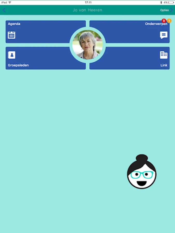 With my help you can organize matters quickly and easily. I connect people in a group. I'll make sure that everyone in the group knows exactly what to do, and who’s going to do that. I'm Nettie, That's well organized.