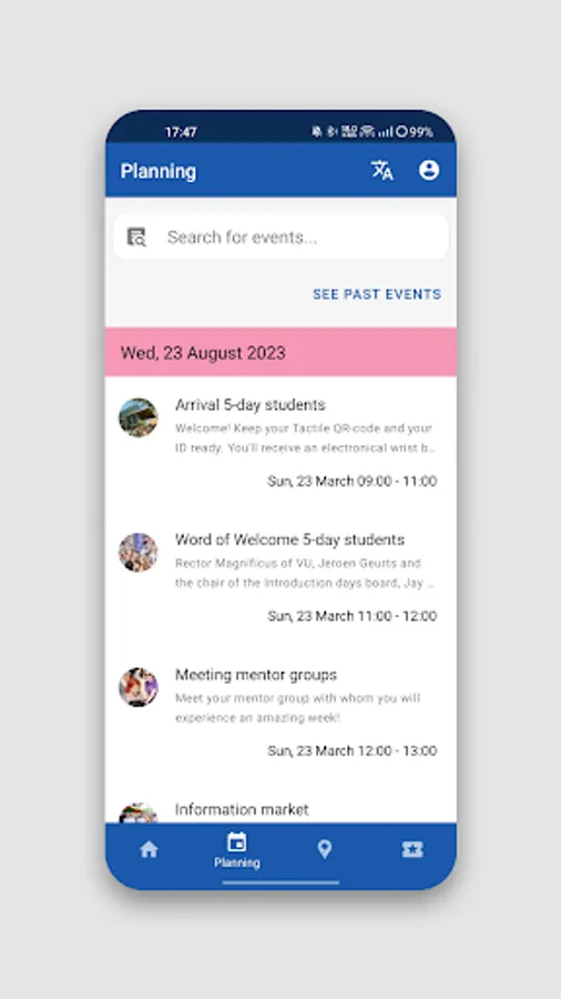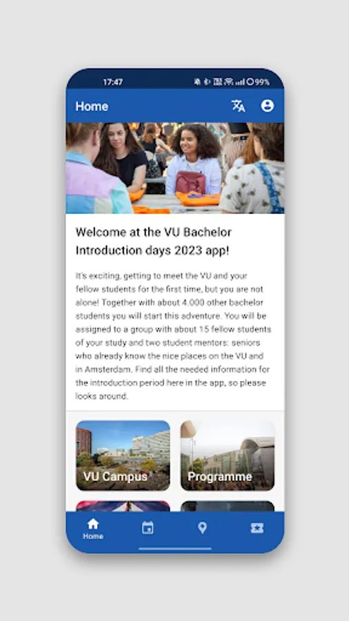 Whether you are a (prospective) VU student or mentor: on this App you can find all information about the VU Introduction Days, ranging from the general programme to all relevant locations and from information about all associations to news and deals. In addition, the app uses push notifications to keep you up to date on possible changes and important updates.