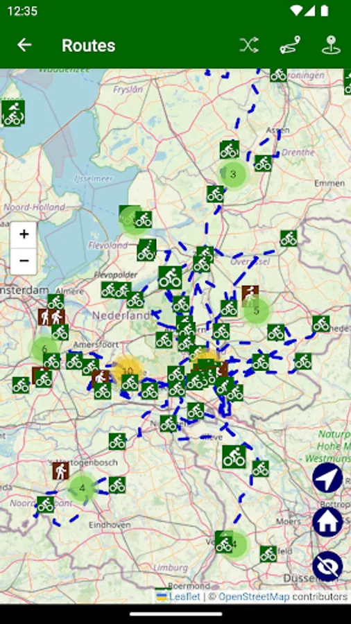 Use the bike and hike nodes system in The Netherlands, Belgium and the borders of Germany to plan your own bike routes. After you make your route you can save, mail and share it.
