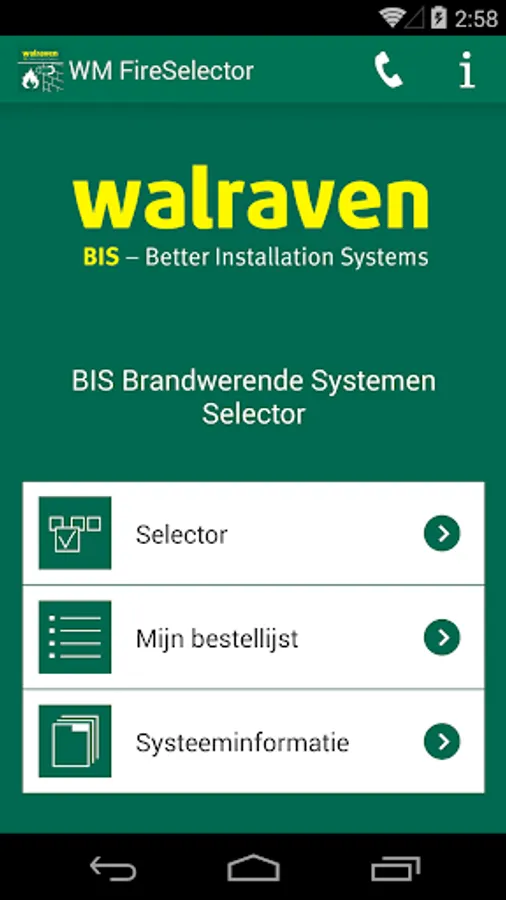 The Walraven BIS Fire Protection Systems Selector is a practical tool to select pipe and cable penetrations through walls and ceilings. Fireproof solution By means of a number of steps to be one or more recommended system solutions, consisting of a combination of a BIS Pacifyre® fire or fire-resistant cuff band and Tangit sealing material. All results shown are easy to install by any professional and thereby, if used according to the assembly instructions, as a system certified. This will fully complied with current legislation in the field of fire safety (the Building Act 2012) and is as a person or organization does not need to be certified.