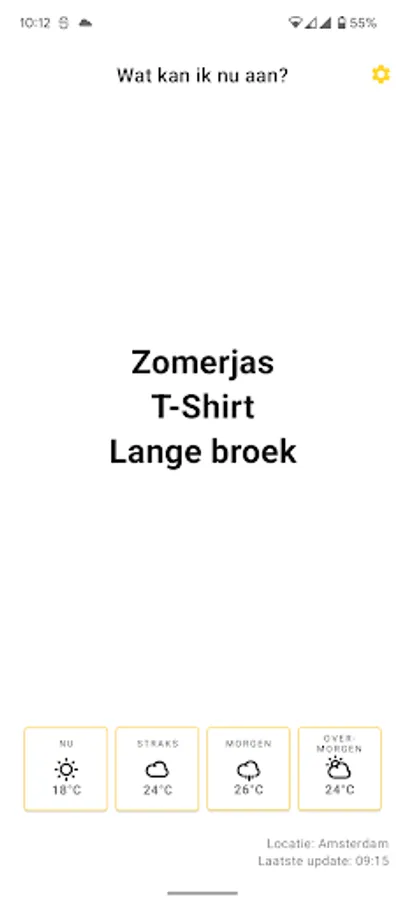 With this app you no longer have to think about what kind of clothing you can wear with the weather of today, tomorrow, and the day after.