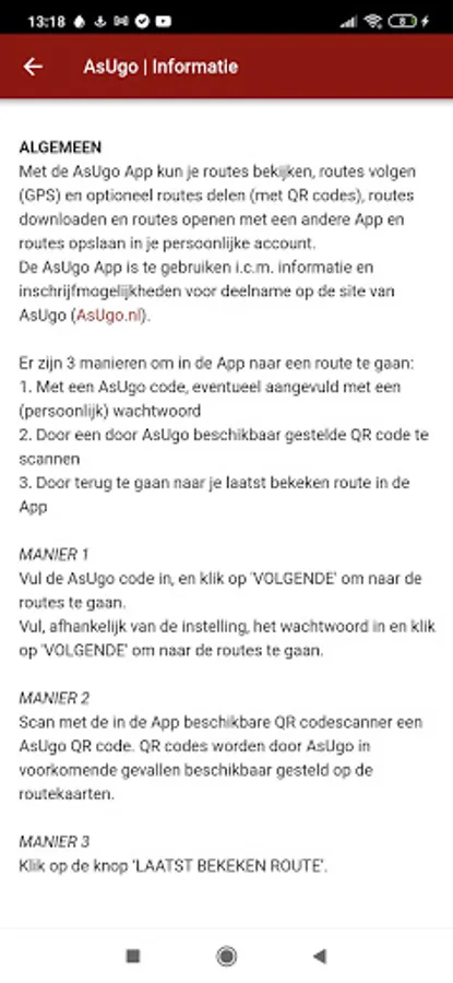With the AsUgo App you can view routes, follow routes (GPS) and optionally share routes (with QR codes), download routes and open routes with another App and save routes in your personal account.