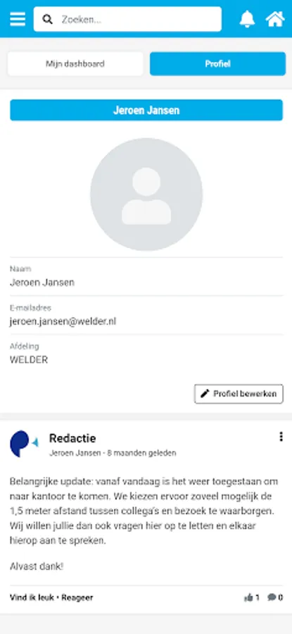 Thanks to handy features such as timelines, event calendar, groups, push notifications and special community promotions, you are informed in real time about everything that happens at your employer. This way you stay involved in the organization and connected with your colleagues criss-cross through the organization! Together you build a pleasant and solid company culture.