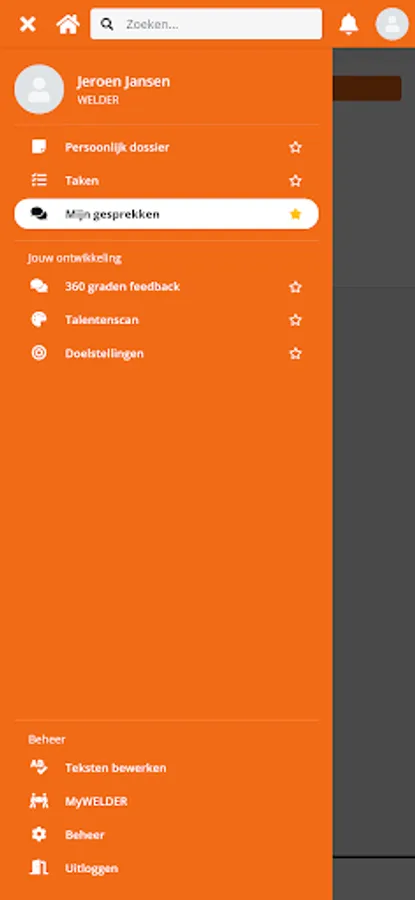 My V@W app; the online platform for you to easily and quickly share new knowledge, ideas and successes with your colleagues. Thanks to useful features such as a timeline, event calendar, groups and special community promotions, you are informed in real time about everything that happens at your employer. Thanks to push notifications you are reminded of reactions from your colleagues, but also of tasks that you have to do. This includes preparing for your performance review or following up on agreements made for your development plan. All aspects of an innovative progress interview are discussed; your competences, ambitions, education and objectives. Working on your personal goals is easily integrated into your daily work. All new colleagues receive a digital onboarding program via the app, and departing employees receive an exit analysis. And a fun knowledge quiz or product training comes along regularly.