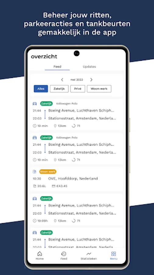 You can benefit from many advantages via the Wensink Private Lease app. Think, for example, of easily finding your car in a busy parking lot and the driver's booklet and the FAQ that you always have at hand. You can also easily keep track of how economically you drive. The app is available now and is completely free!