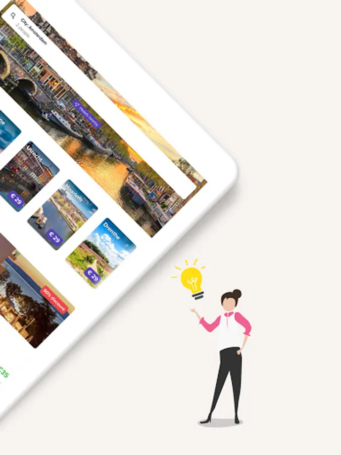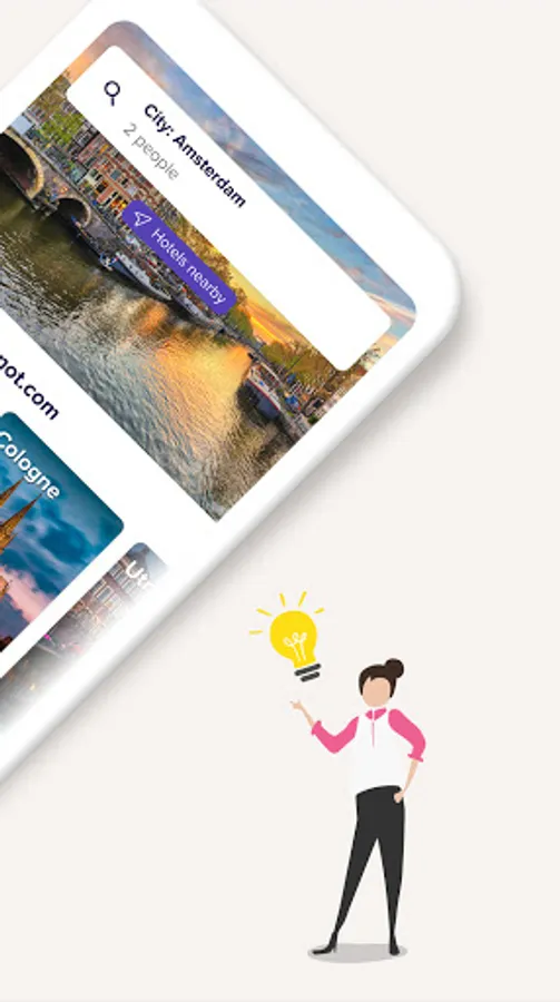 With the whynot.com app you can book a hotel in a prime location in an instance. Go and discover a vibrant city, unwind in a beautiful nature reserve or opt for a romantic weekend away. With the whynot.com app you have the best hotel deals in your pocket!