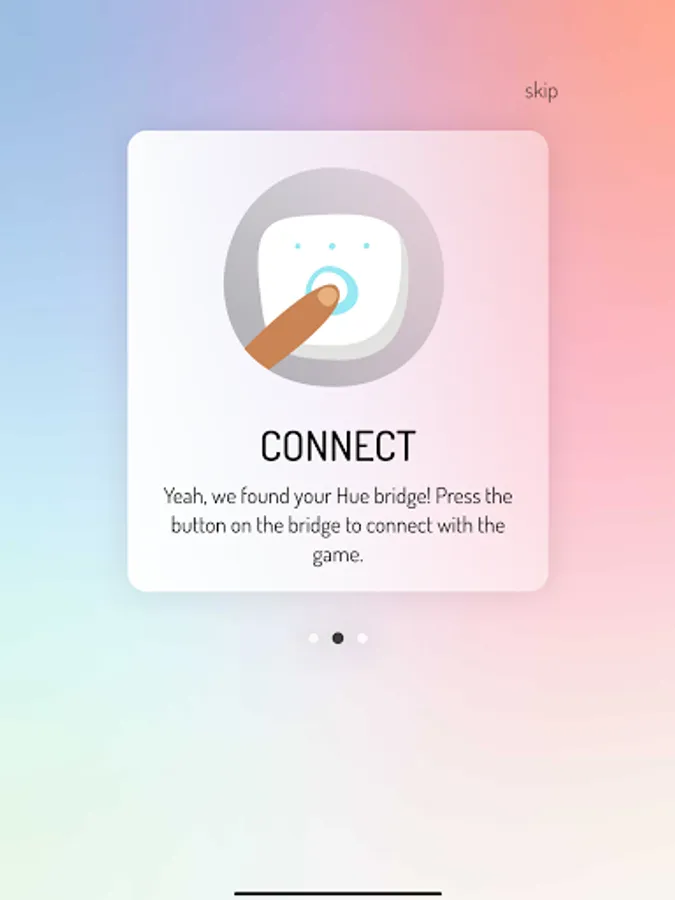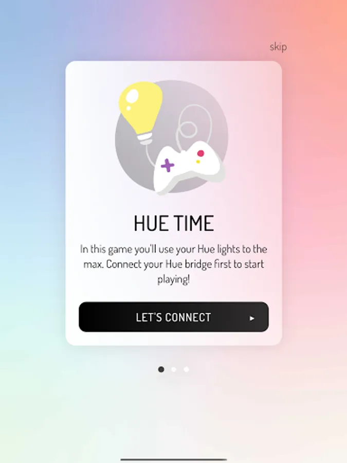 A simple three-step onboarding procedure will help you to connect your Philips Hue lights to the brain games: