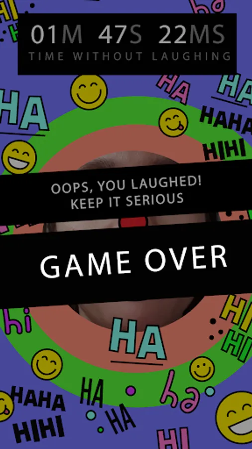 Turn on your camera and try not to laugh in this game for as long as possible. Keep your face serious, because as soon as you laugh, smile or grin, time stops and the game is over. The app will turn on your device’s front camera to track your face. Latest face detection technology and computer vision (Google's Mobile Vision face API) is used to detect in real-time if you are laughing or smiling. We challenge you to try not to laugh for as long as possible.