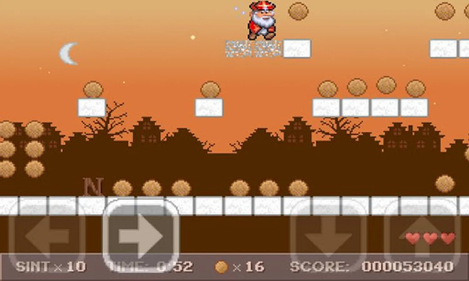 Sint has to deliver all the presents during the same night and be ready before dawn. So be sure to watch the time at the bottom of the screen. If Sint completes a level fast enough, there might also be time left for a bonus level!
