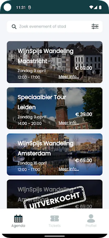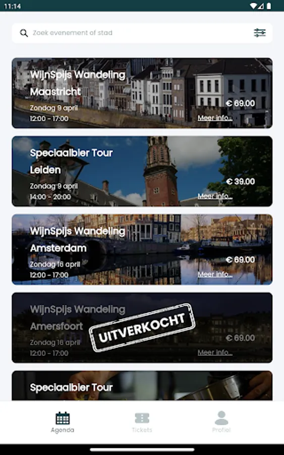 Use the WijnSpijs App for all your Culinary Walks. You can purchase your Surprise Dinners, WijnSpijs and BierSpijs Wandelingen directly from the app. Also all your tickets are in it.