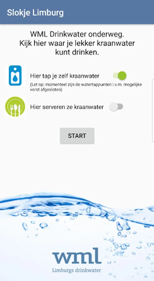 WML Drinking water on the way. Take a look in this app where you can drink tap water in Limburg on the way. Self-tapping a water tap, or in catering establishments that serve drinking water.